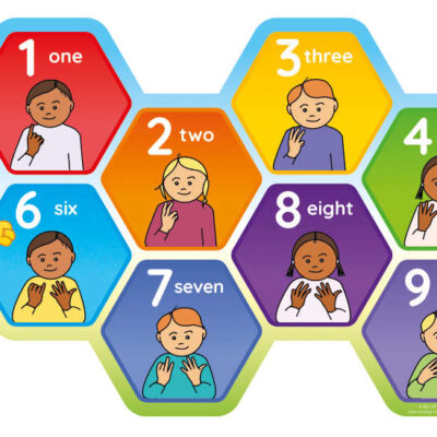 This BSL Numbers 1 to 10 sign (Set A) demonstrates the British Sign Language two-handed signs for numbers 1 to 10. BSL Numbers are subject to regional variation. We have produced signage for the two most commonly used versions for BSL Numbers 1 to 10 using two hands for numbers 6 to10.