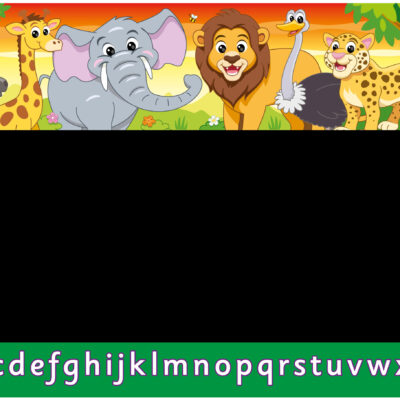 The animal alphabet chalkboard sign. Beautifully illustrated with friendly animal characters, that are printed in bold colours and cut from 5mm thick Foamex (a rigid plastic board). Partially covered in a black chalkboard vinyl, compatible with real and liquid chalk, that enables children to practice their writing skills.